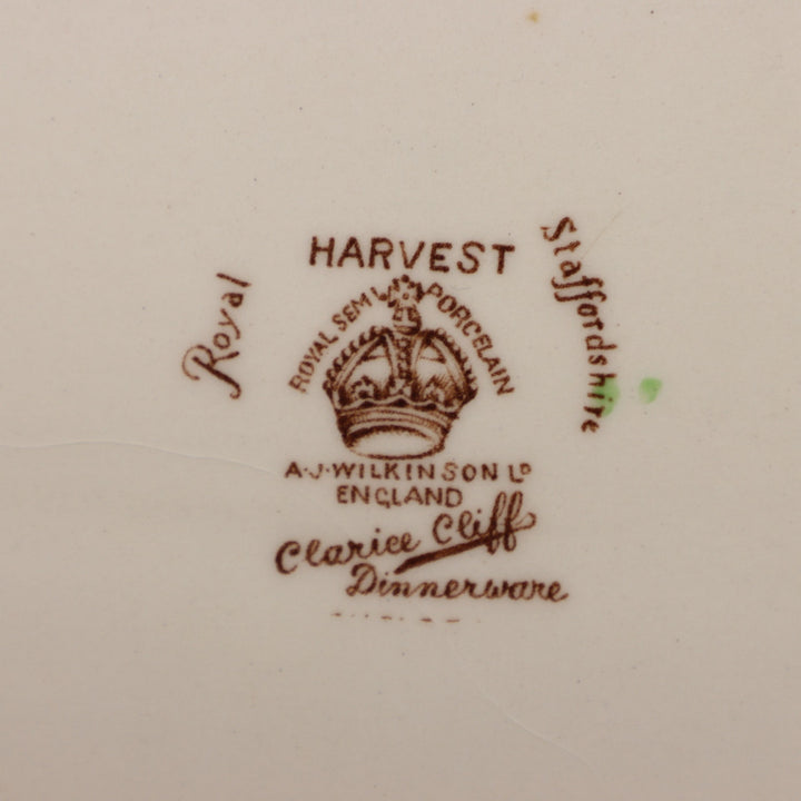 Backstamp: Brown crown mark, “Royal Staffordshire, Clarice Cliff, A.J Wilkinson, Dinnerware”