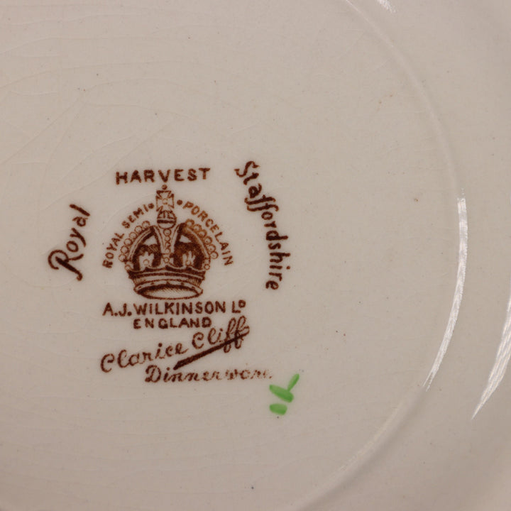 Backstamp: Brown crown mark, “Royal Staffordshire, Clarice Cliff, A.J Wilkinson, Dinnerware”