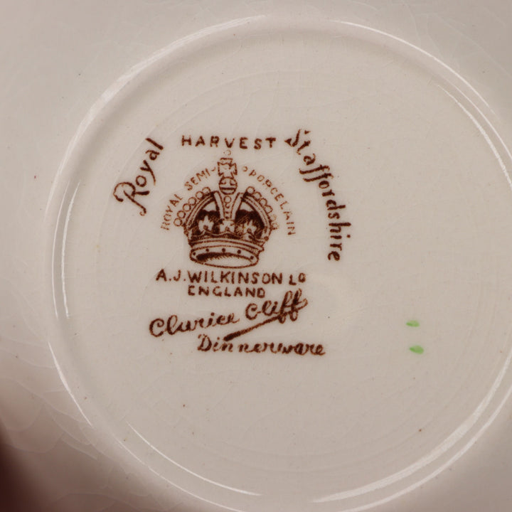 Backstamp: Brown crown mark with “Royal Staffordshire, Clarice Cliff, Dinnerware”