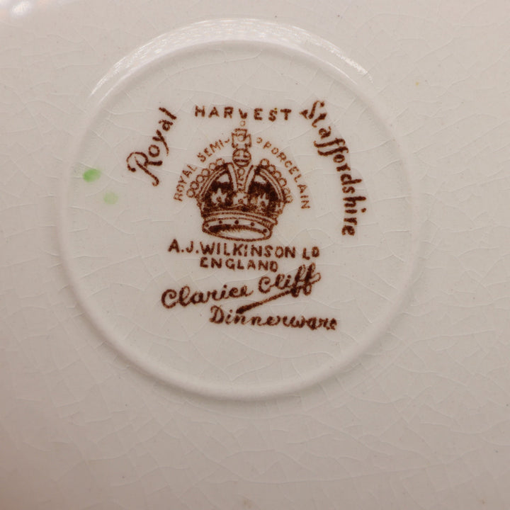 Backstamp: Brown crown mark, “Royal Staffordshire, Clarice Cliff, A.J Wilkinson, Dinnerware”