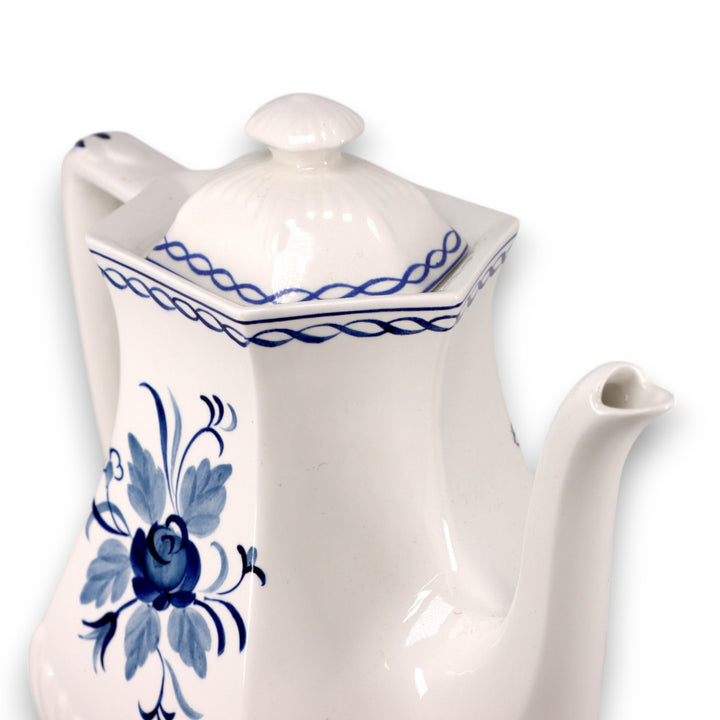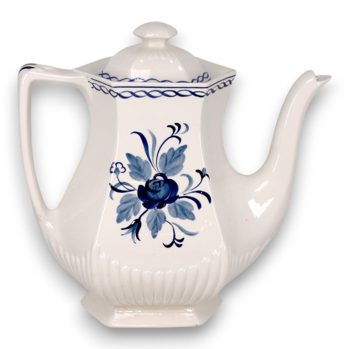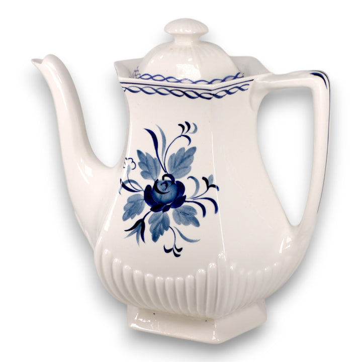 Adams Baltic Blue Coffee Pot 9" 5 Cup White Micratex Ironstone Vintage 1960's