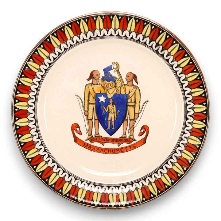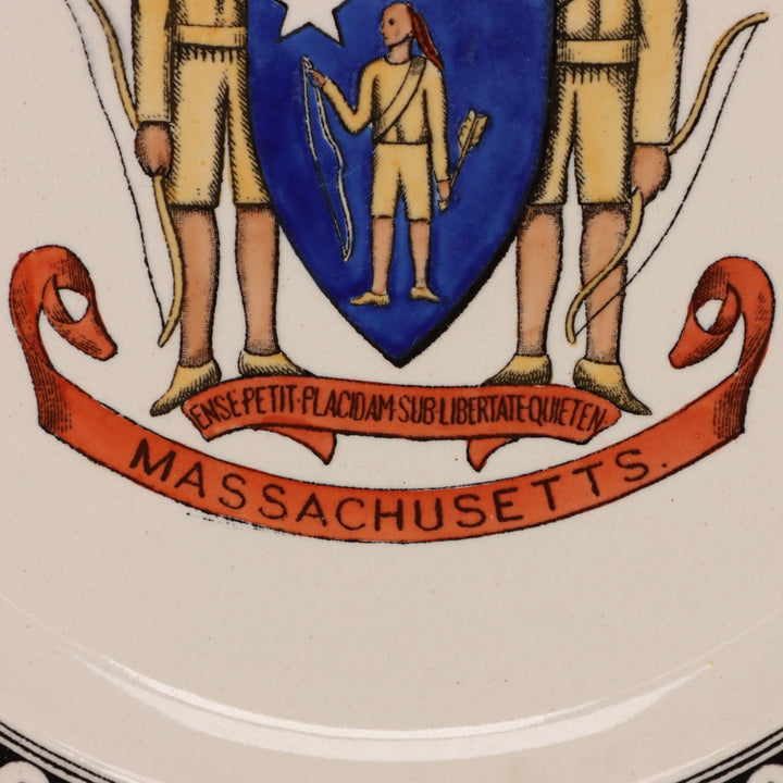 Adams Tunstall Armorial Massachusetts Cabinet Plate 9 3/4" Staffordshire Antique