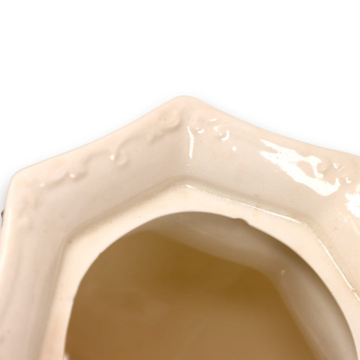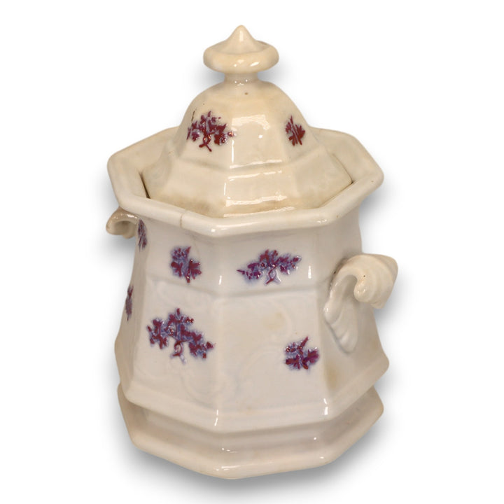 1pc Lidded sugar bowl 7 1/4" H x 4 3/4" OD (Discoloration, Hairline crack in upper portion. Checks pics)