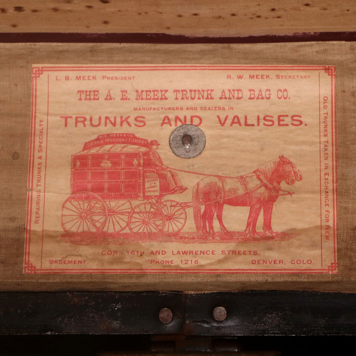 A.E. Meek & Co. was founded by Arthur Edmond Meek in Denver, Colorado, in 1876. His brothers, Leonard and Rupert, joined the business and they built a factory to produce trunks and valises in 1905. They also operated a retail store at a separate location. The factory became The Atlas Luggage Company in 1932. That company is still in business, now as the Atlas Case Corporation.