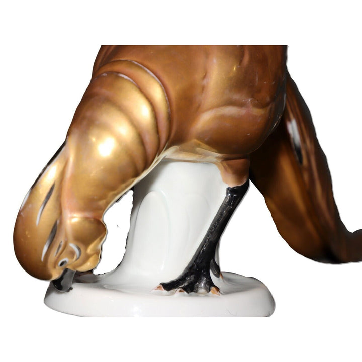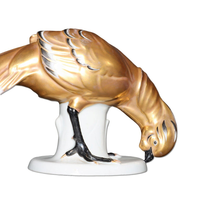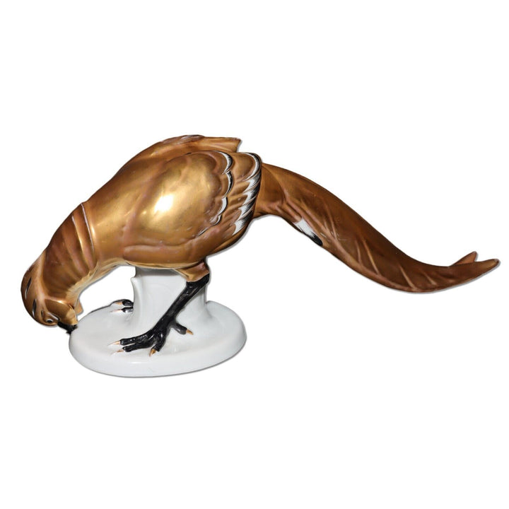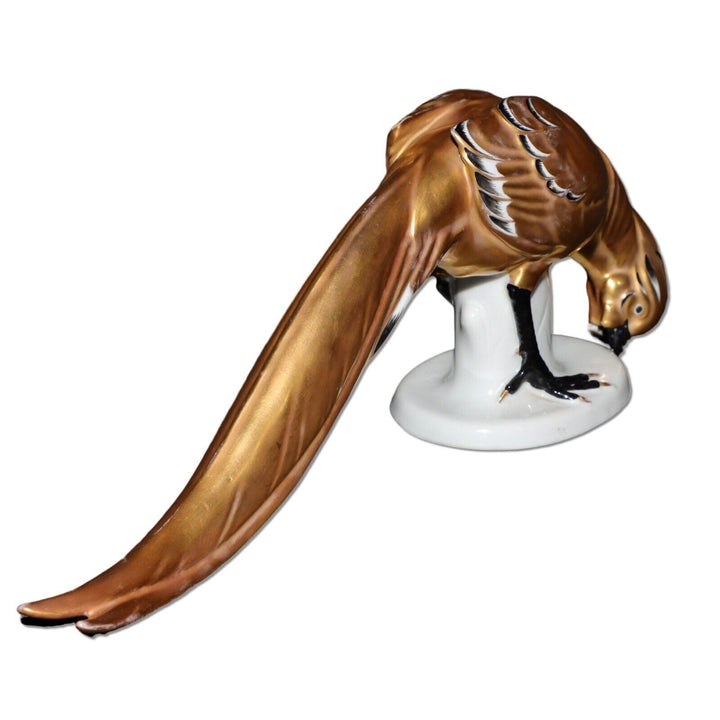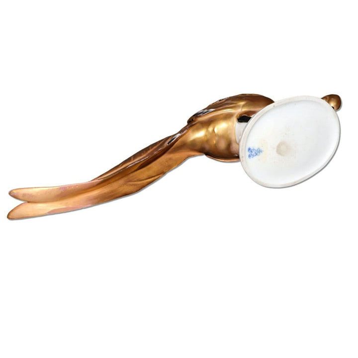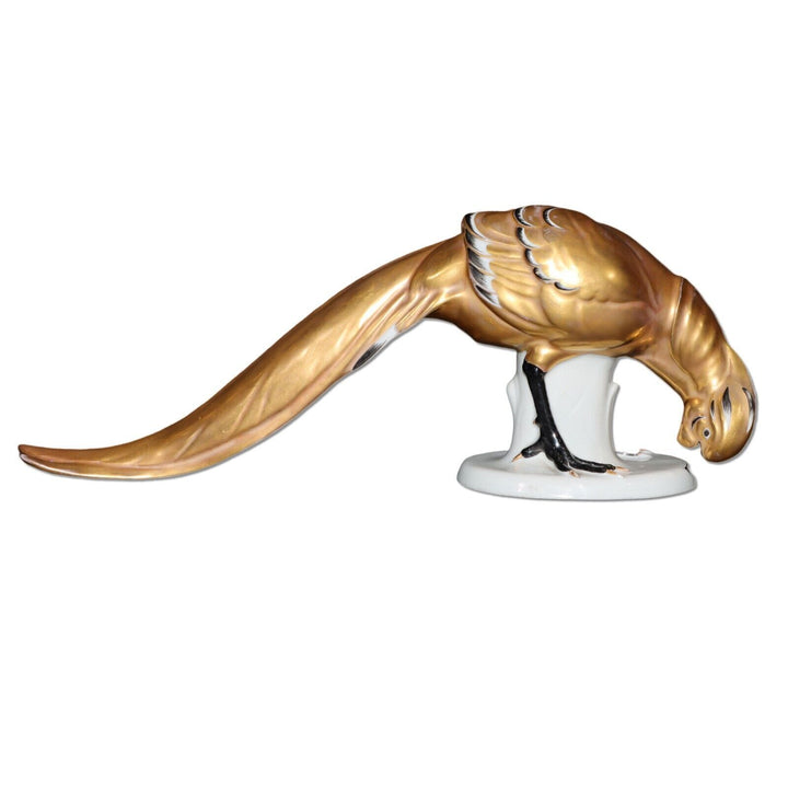Dresden Aelteste Volkstedt Golden Pheasant Bird of Paradise Figurine 13" Gold covered.