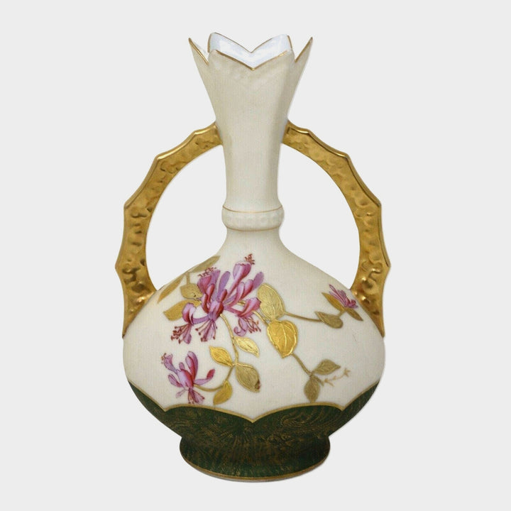 AK Klingenberg Limoges 9" Porcelain Gold Handled HP Floral Vase 132 1880-90