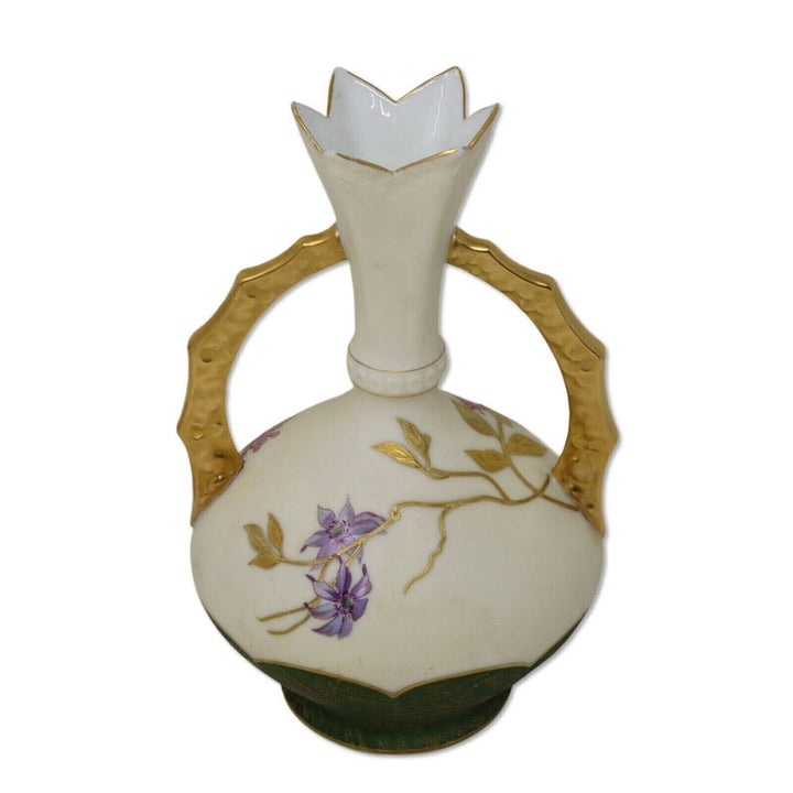 AK Klingenberg Limoges 9" Porcelain Gold Handled HP Floral Vase 132 1880's