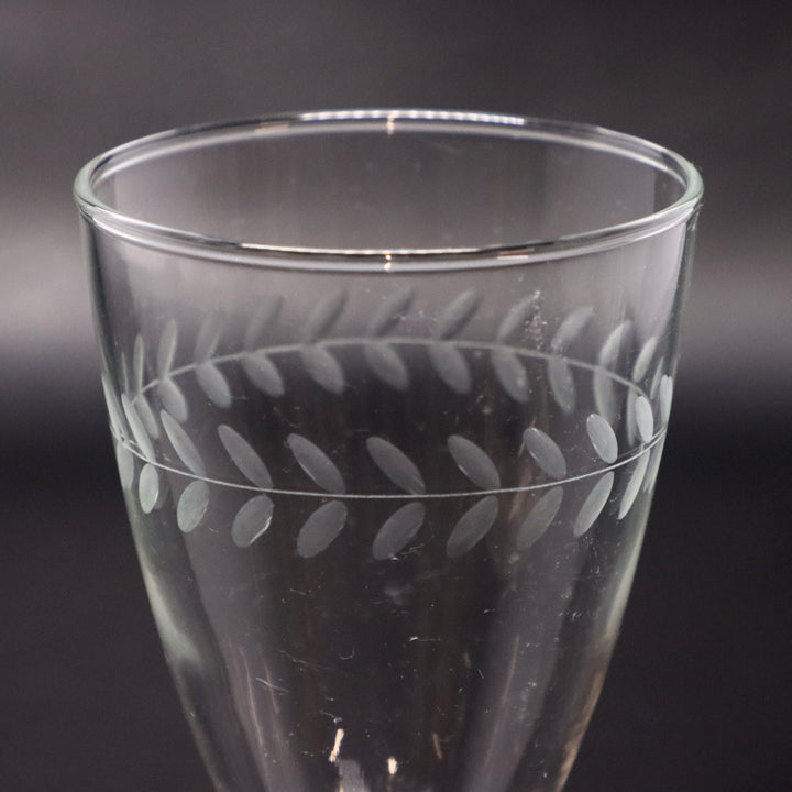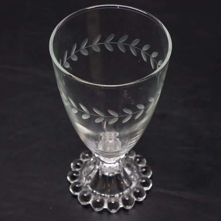 Anchor Hocking Grey Cut Laurel Water Goblet 5 1/2" Glass Etched Bubble Footed Vintage 1950's