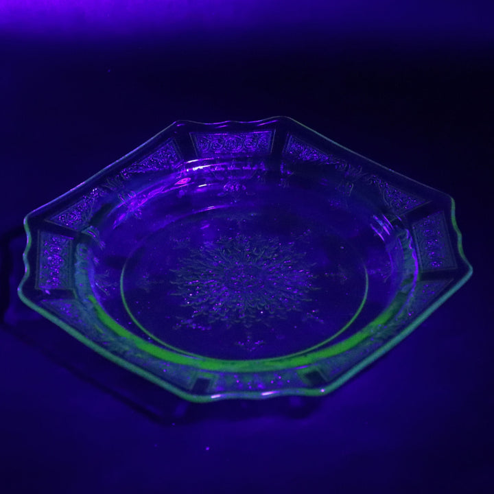 Anchor Hocking Princess Vaseline Uranium Depression Glass Bread Plate