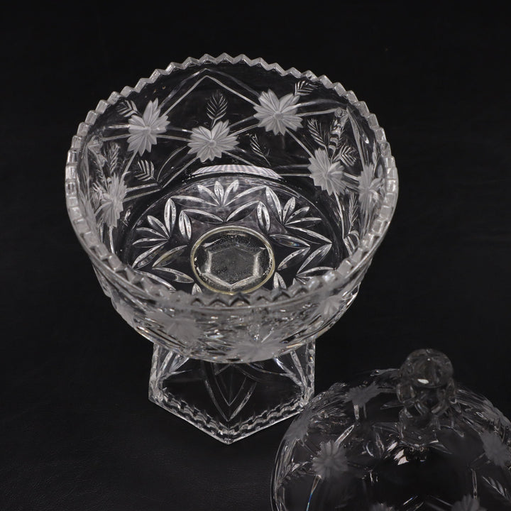 Anna Hutte Bleikristall  11" Crystal Bon Bon Lidded Candy Dish Etched Germany