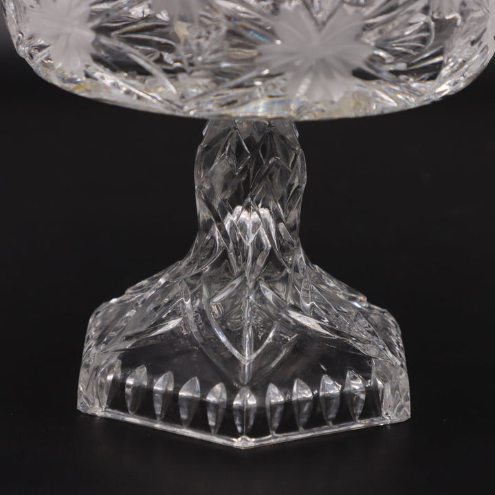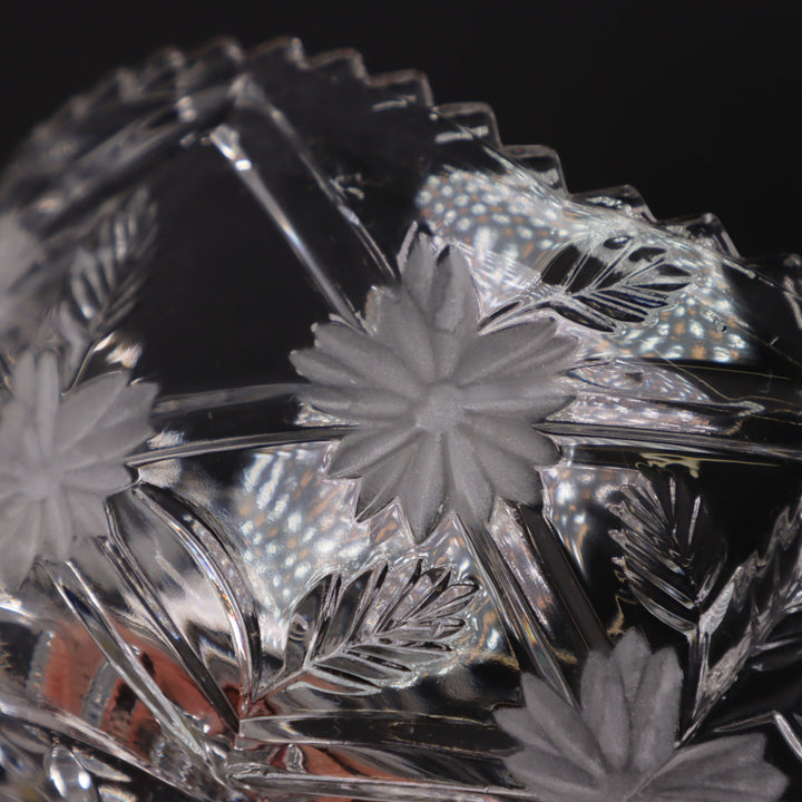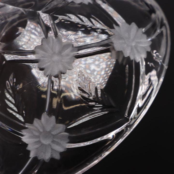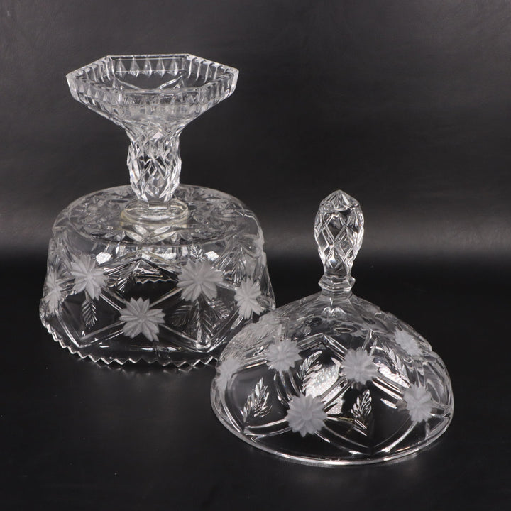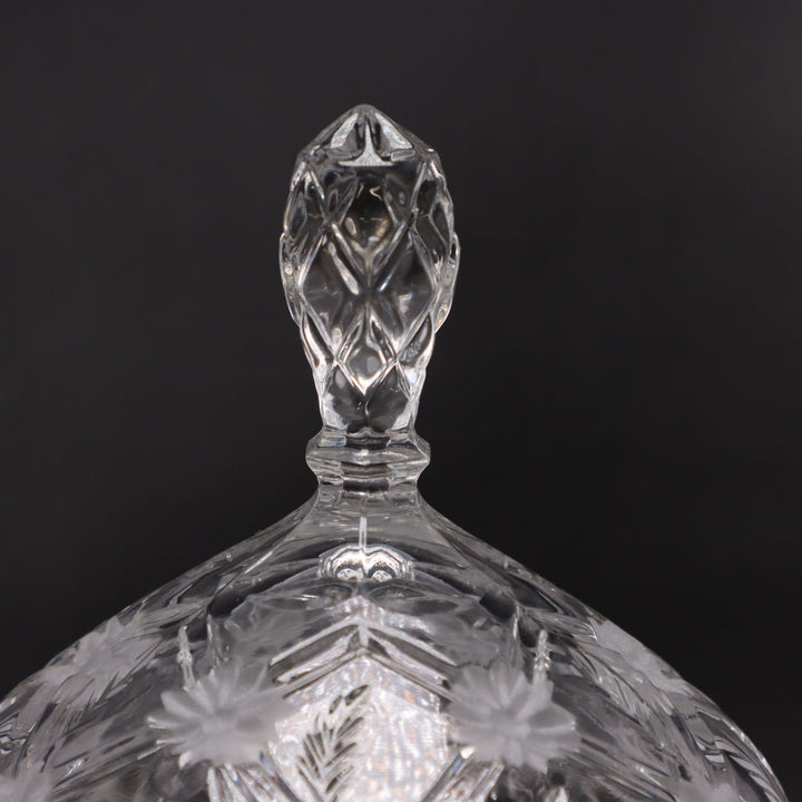Anna Hutte Bleikristall  11" Crystal Bon Bon Lidded Candy Dish Etched Daisies Germany