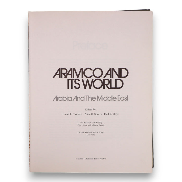 This is a vintage 1981 second printing of Aramco and Its World: Arabia and the Middle East, edited by Ismail I. Nawwab, Peter C. Speers, and Paul F. Hoye. Published by the Arabian American Oil Company (Aramco), this richly illustrated volume explores the history, geography, culture, and oil heritage of Saudi Arabia and the broader Middle East. With vivid photography, maps, and detailed essays, this book is both a historical reference and a collectible corporate publication. A fine addition for collectors of oil industry memorabilia, Middle Eastern history, and vintage illustrated books.