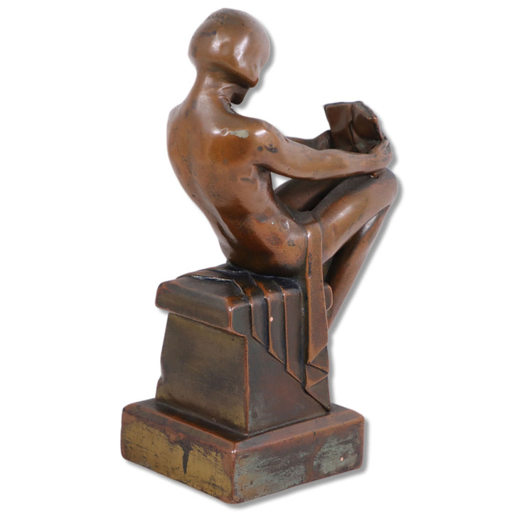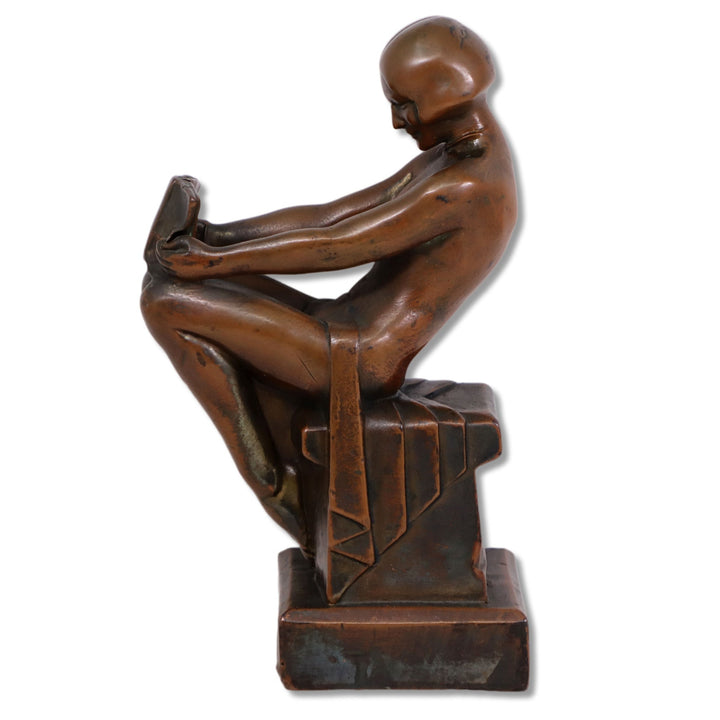 Art Deco Bronze Flapper Nymph Sculpture Figure Reading Bookend 1940's