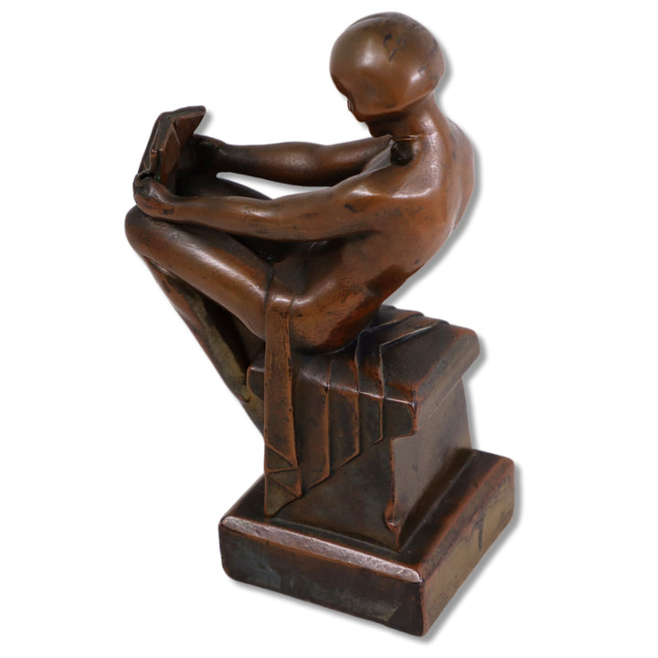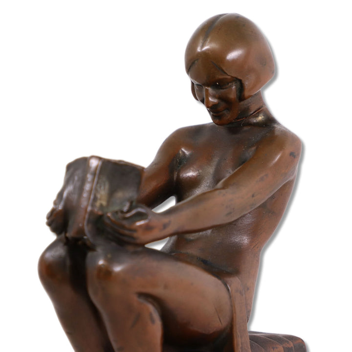 Broze Sculpture of Art Deco  Flapper Nymph Figure Reading Bookend