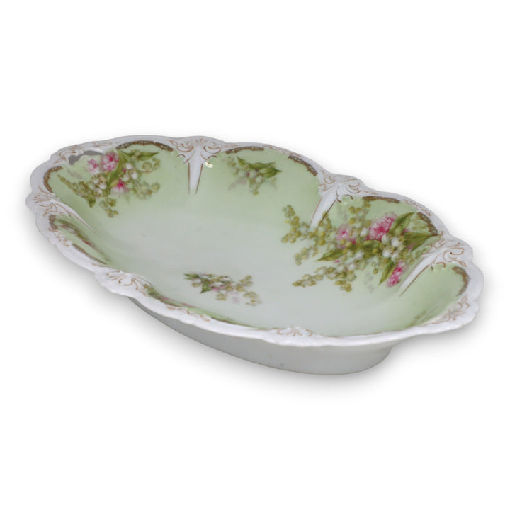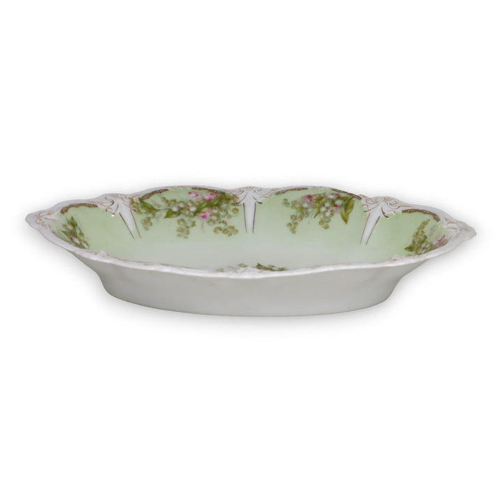 Austrian Green Flowers and Berries Oval Vegatable Serving Bowl Centerpiece