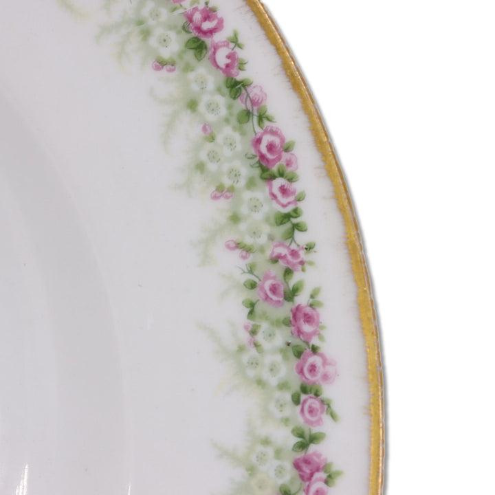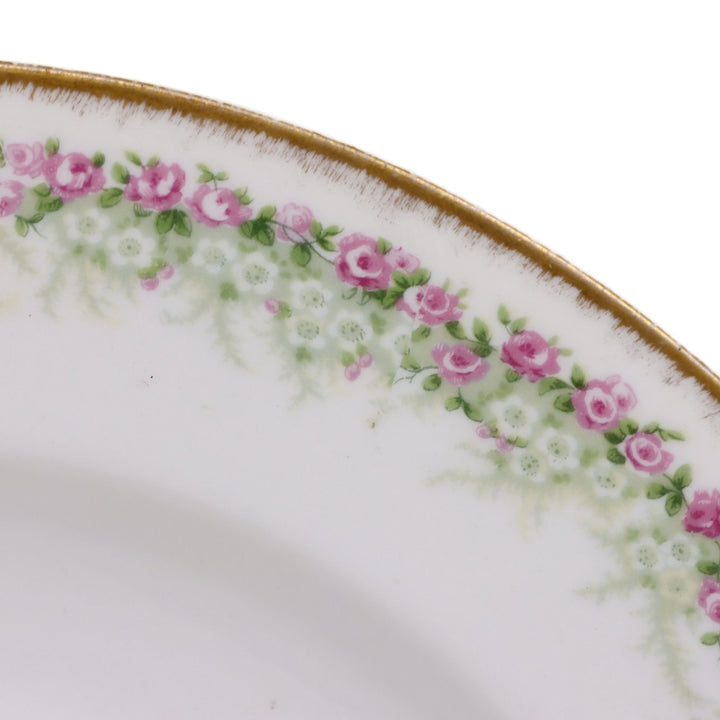4pc BL Limoges France 9" Soup Bowls Pink Roses Gold Rim Antique