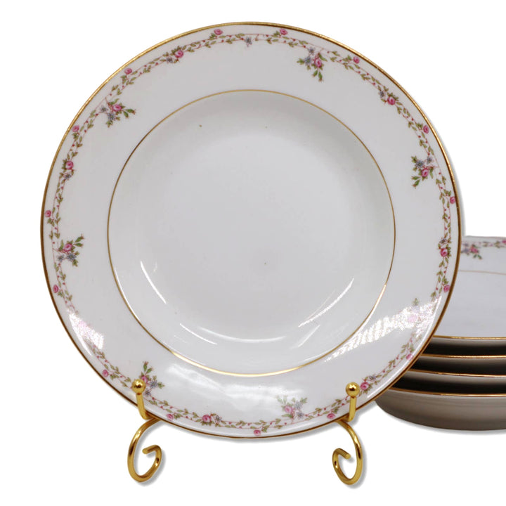 B&Co L Bernardaud Limoges 9" Rimmed Soup Bowl Pink Rose Gold Rim 1900