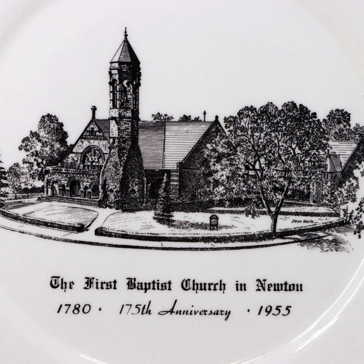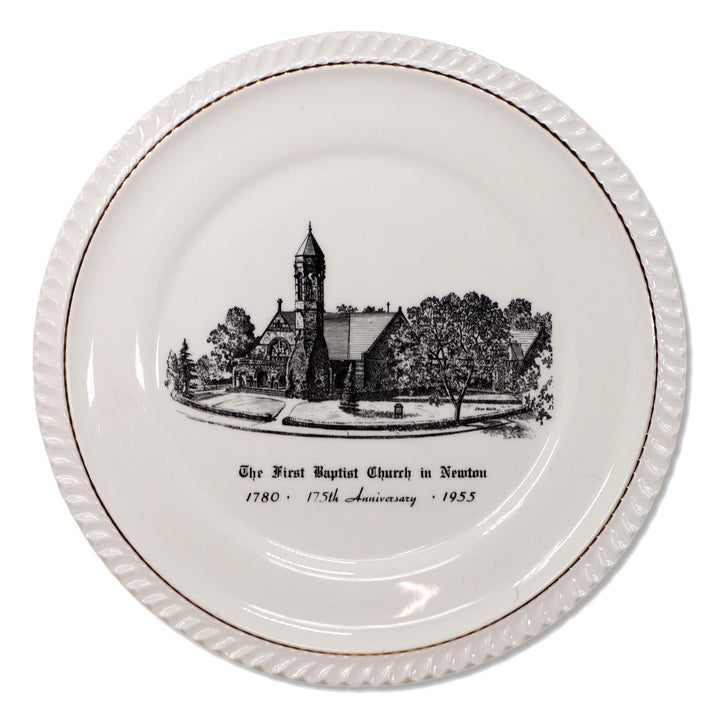 Transferware souvenir plate for the 175th Anniversary of the First Baptist Church of Boston Newton, MA 1780 to 1955