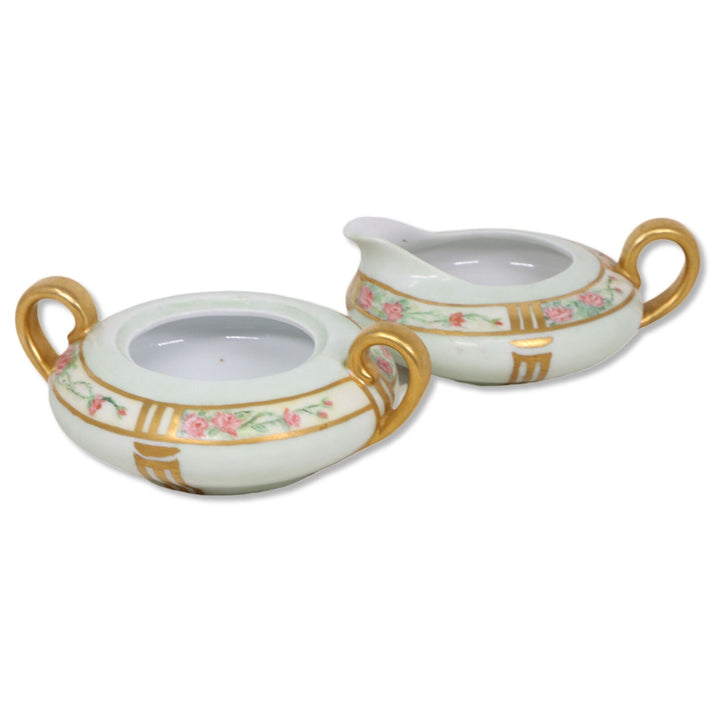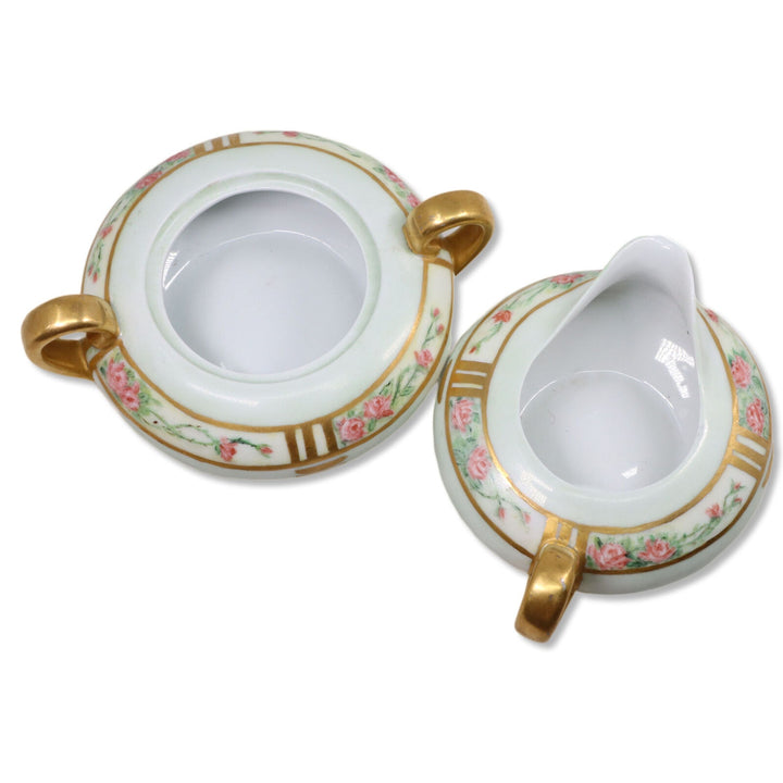 Bavarian Art Deco Creamer Pitcher Sugar Bowl Set Pink Rose Gold Trim