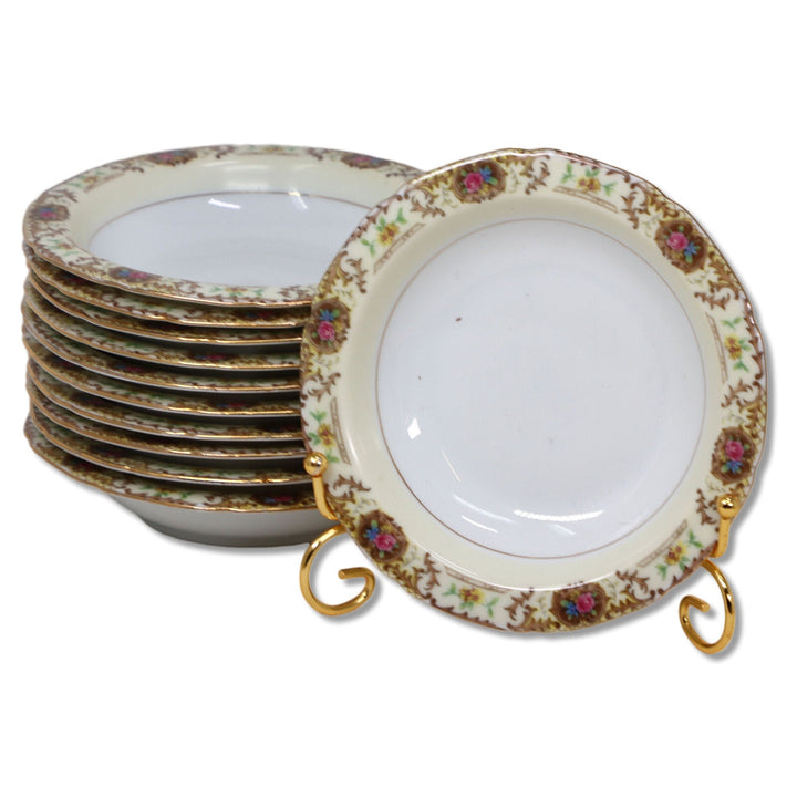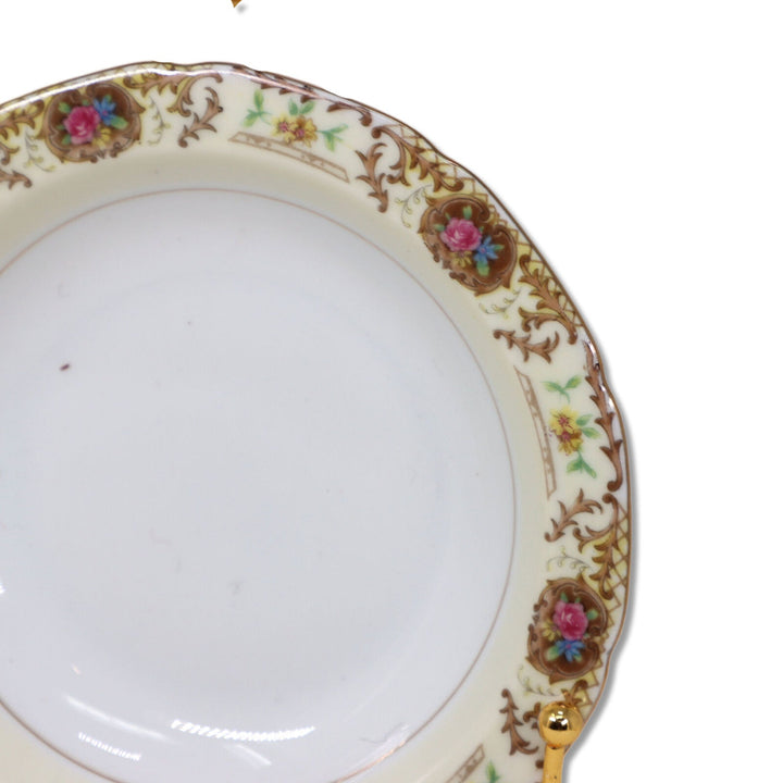 Black Knight Patricia-Brown pattern fine china. Floral swags with gold handles and rim.