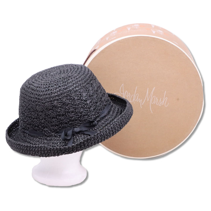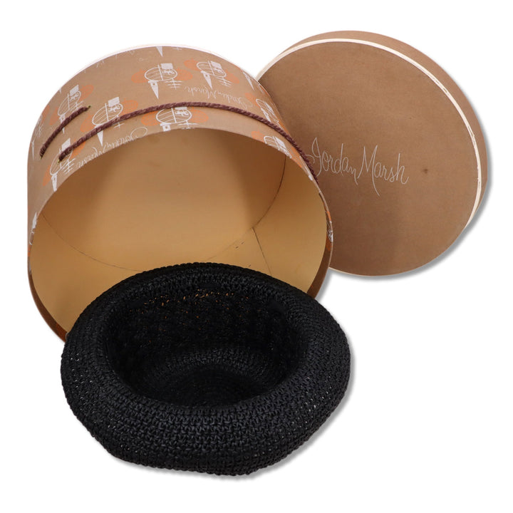 Black Woven Jute Medium Ladies Hat with Jordan Marsh Vintage 12" Hat Box