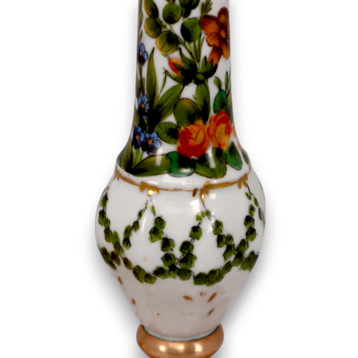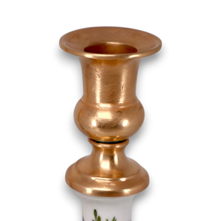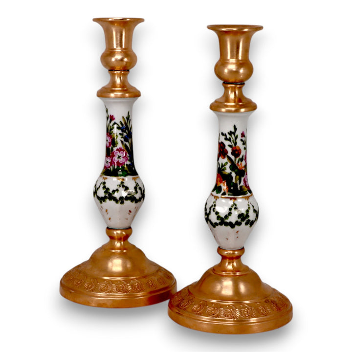 Brass and Hand Painted Porcelain Candlestick Holders 1 Pair 2pc Vintage