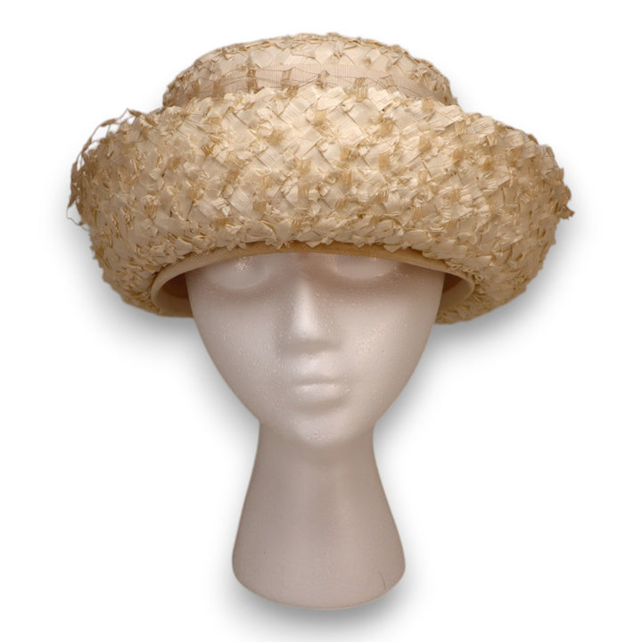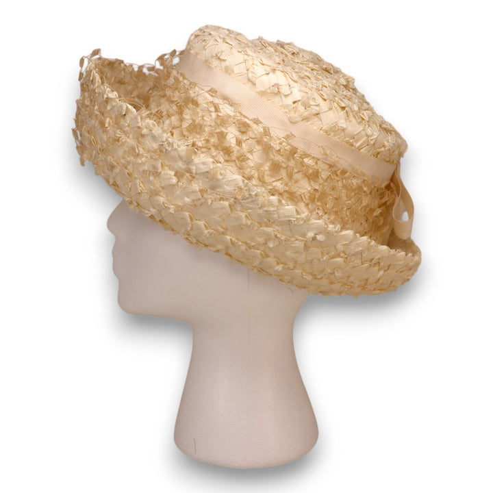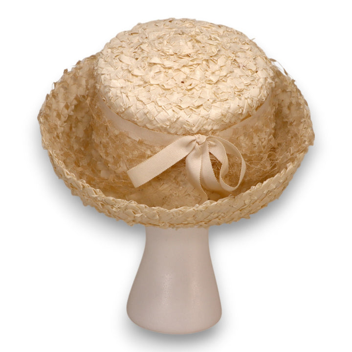Breton Cream Woven Hat with Lace Coverage Vintage 53cm Small Ladies