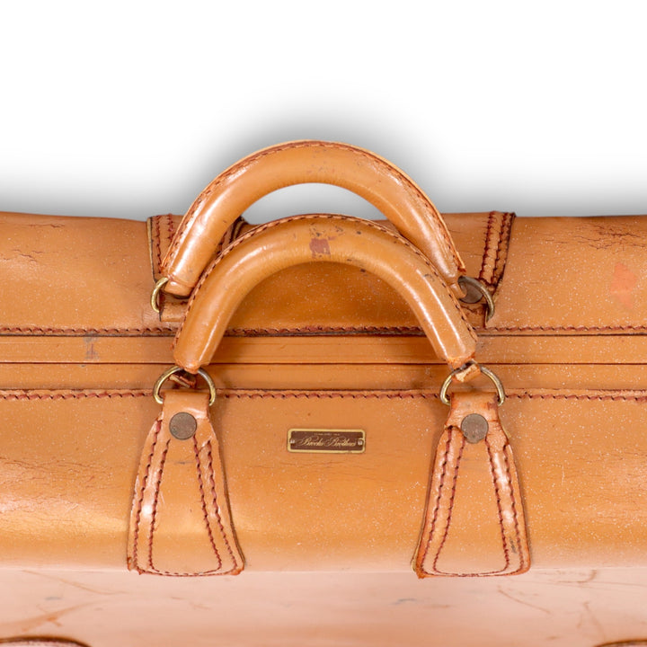 Brooks Brothers Cowhide Leather Suitcase 25x18x8 England Vintage 1950's