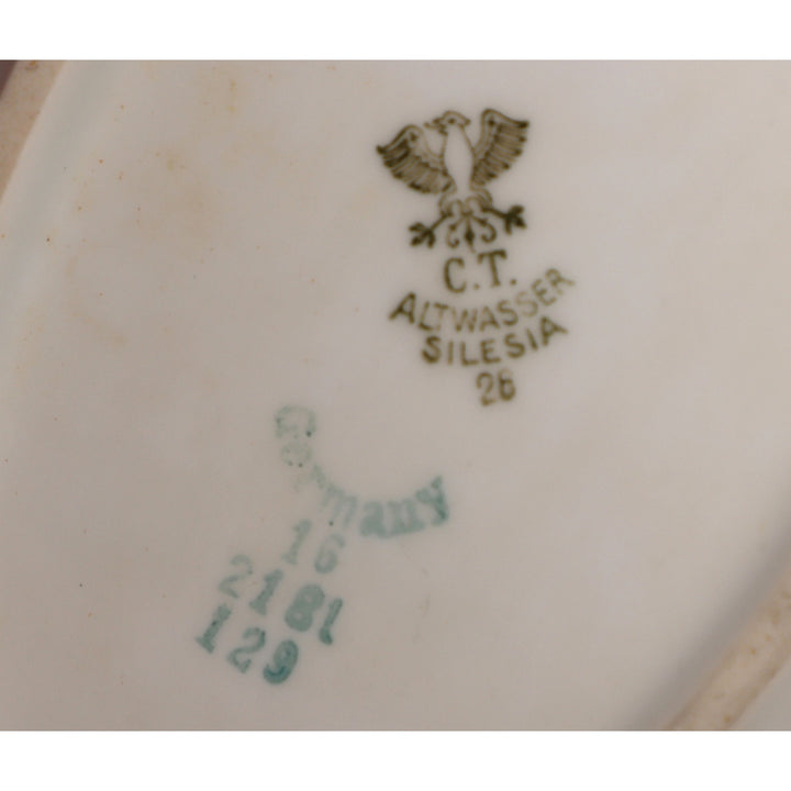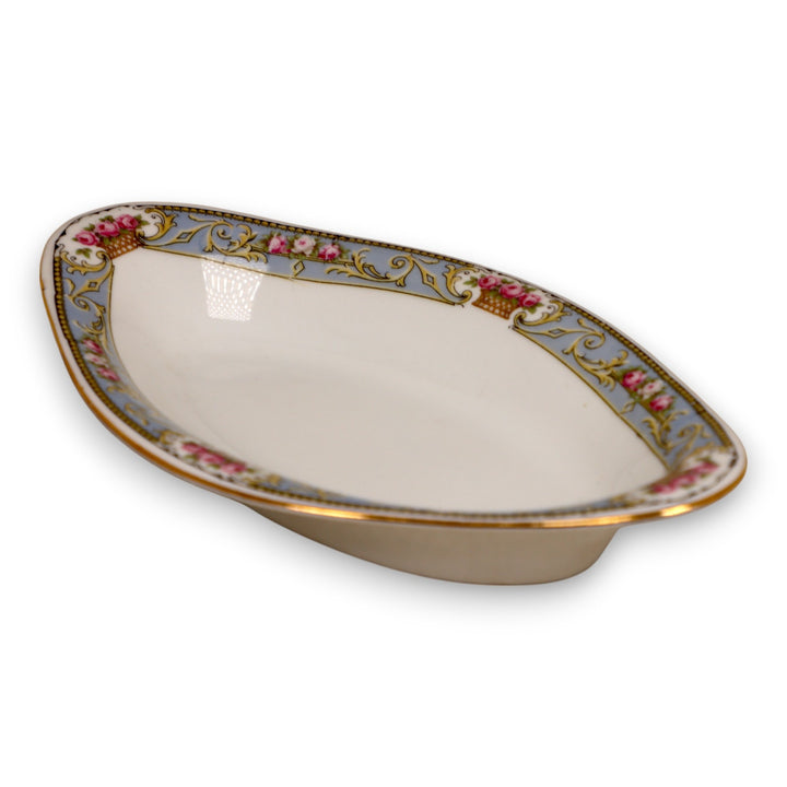 C Tielsch Altwasser 2181 Asparagus Dish 8" Roses Blue Band Gold Silesia 1920's