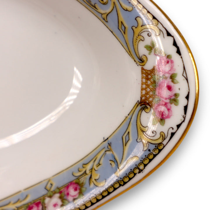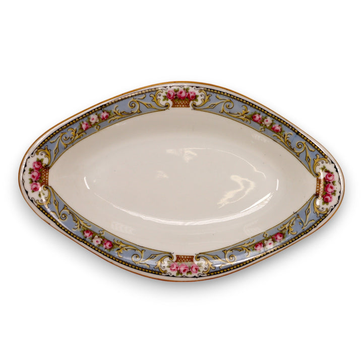 C Tielsch Altwasser 2181 Asparagus Dish 8" Roses Blue Band Gold Trim Silesia Germany Antique 1920's