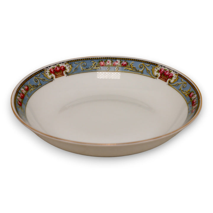 C Tielsch Altwasser 2181 Coupe Cereal Bowl 7 1/4" Roses Blue Band Gold Trim Silesia Germany Antique 1920's