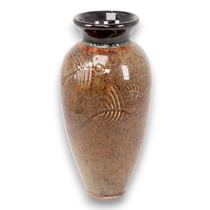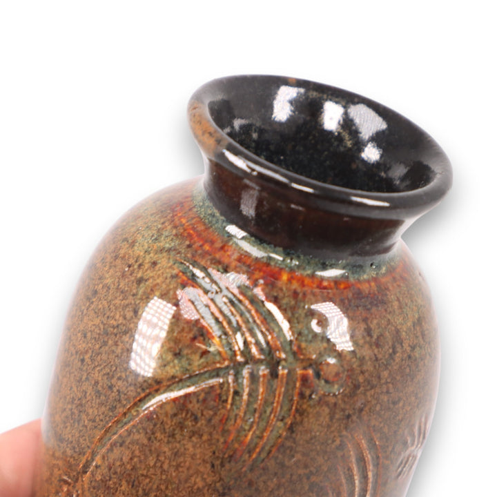Ceramic Vase 4 1/2" Brown Glazed Vintage Signed 2009