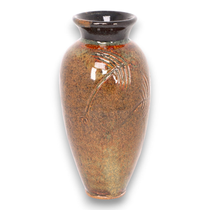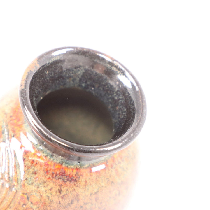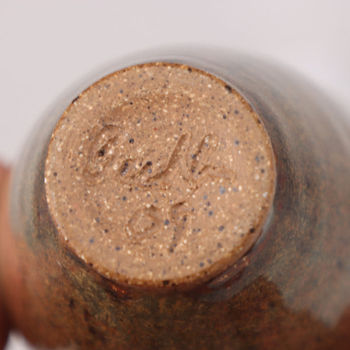 Ceramic Vase 4 1/2" Brown Glazed Vintage Signed 2009