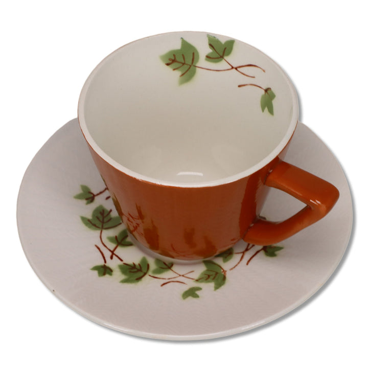 Ceranord Feuilles D'Automne Brown Tea Cup Saucer Set France Vintage