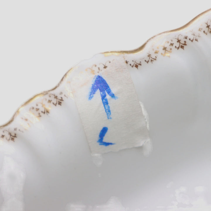 Very good condition. Some gold wear on rim. Gorgeous set. Large one has two rim chips as indicated in pics.