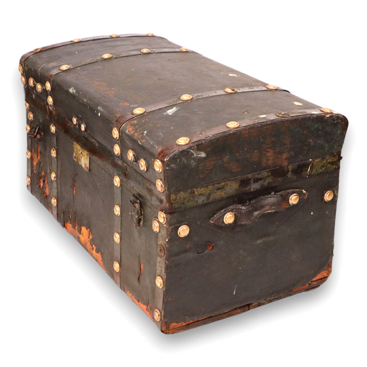 Civil War Era Brass Buttoned Leather Paneled Antique Stagecoach Trunk C. 1850's