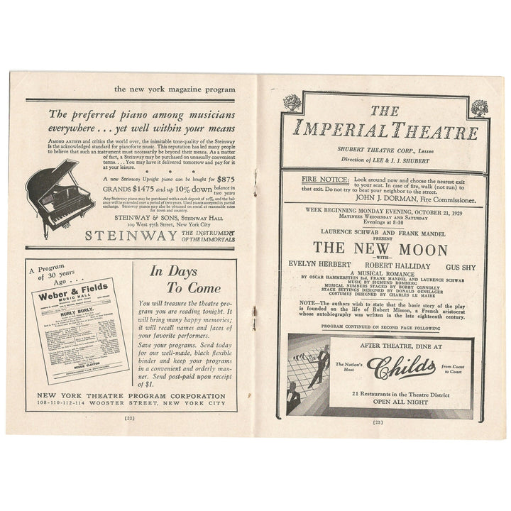 Court Jesters on The New Moon 1929  Imperial Theater Program Evelyn Herbert