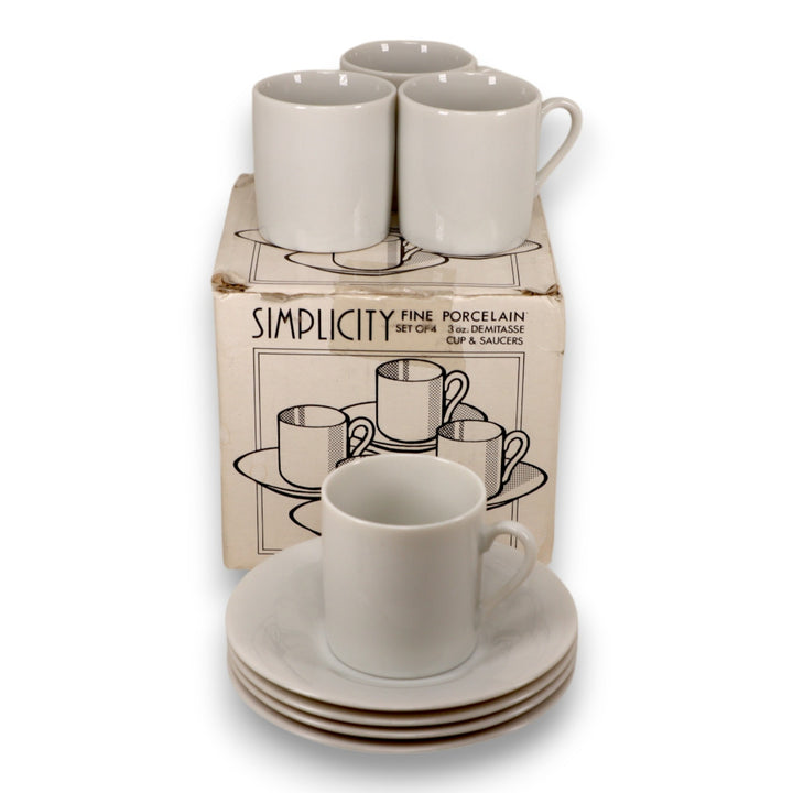 Creative Kitchens 4pc Simplicity Demitasse Espresso Cup Saucer Set White New in Box