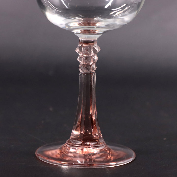 Cristal D'Arques-Durand CRA35 Wine Goblet 6 3/4" Pink Spiked Glass Stem Clear