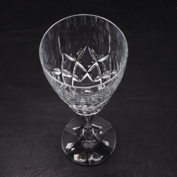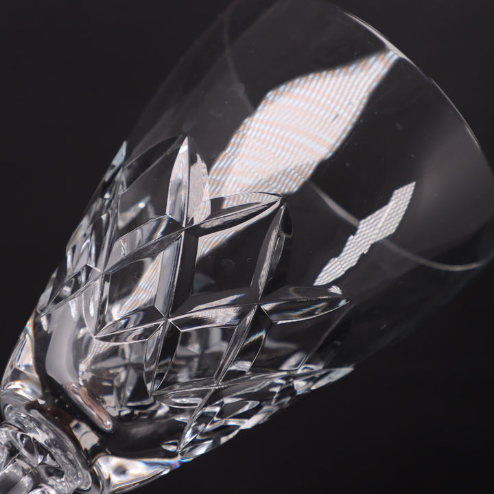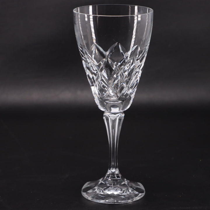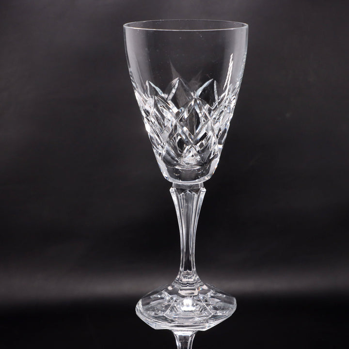 Cross Cut Glass Wine Goblet 7 7/8" Paneled Stem and Foot
