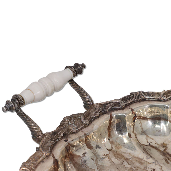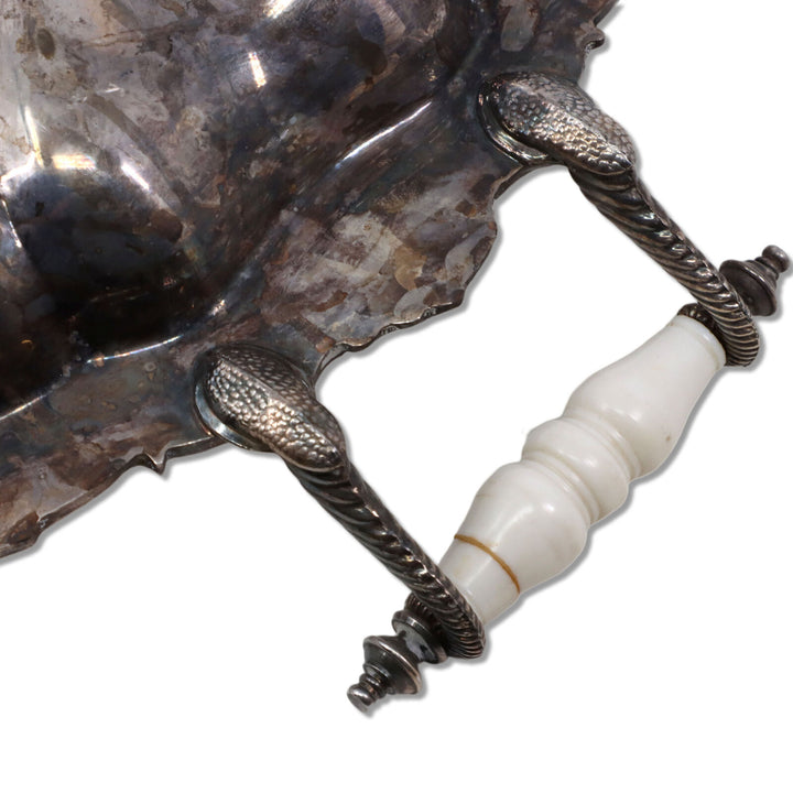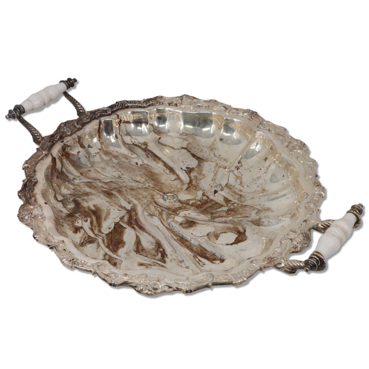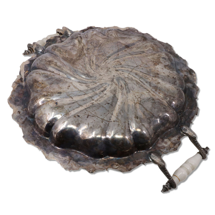 Crown Silver on Copper 16" Serving Tray Swirl Fluted Celluloid Handle 1940's