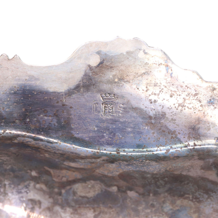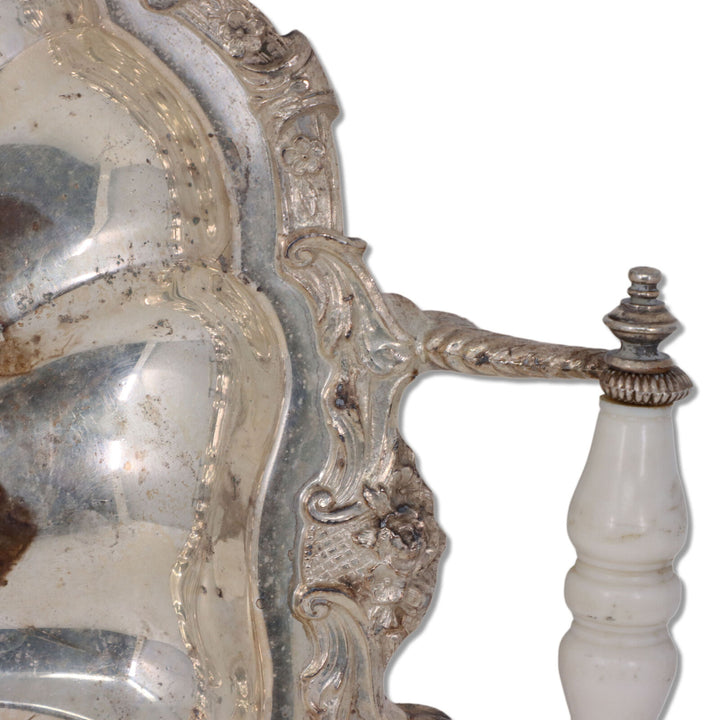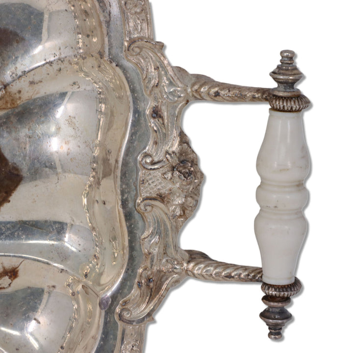 American silver on copper serving tray with celluloid handles by the Crown Silver Company Inc. of Brookline, MA active c. 1935/1950.