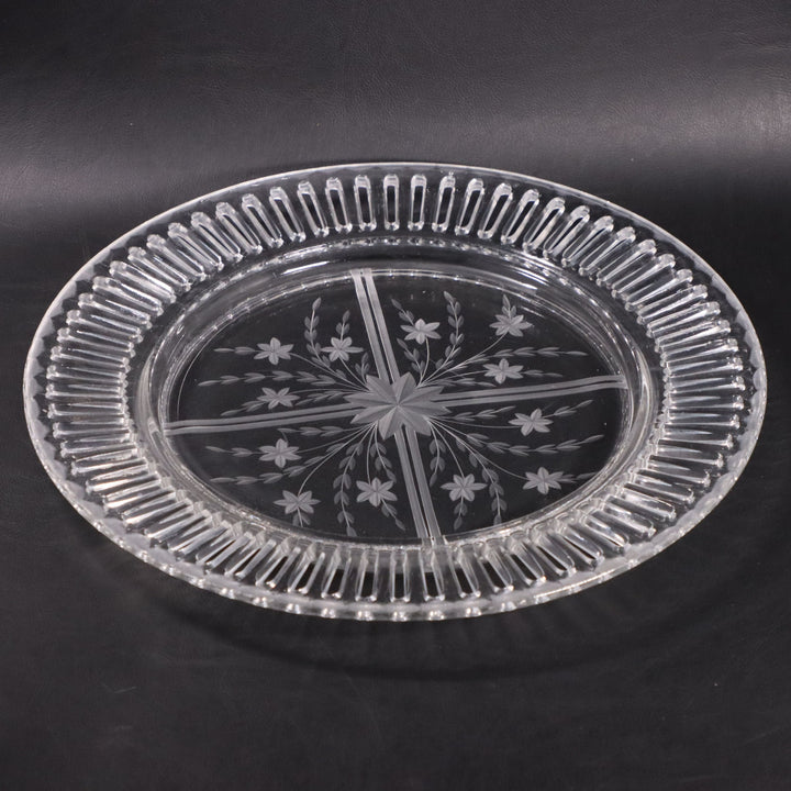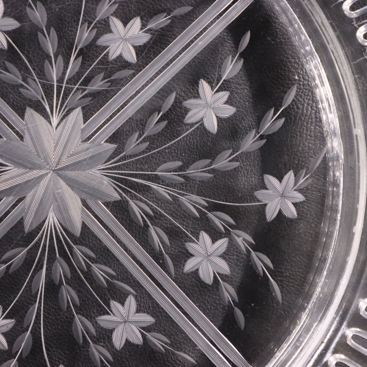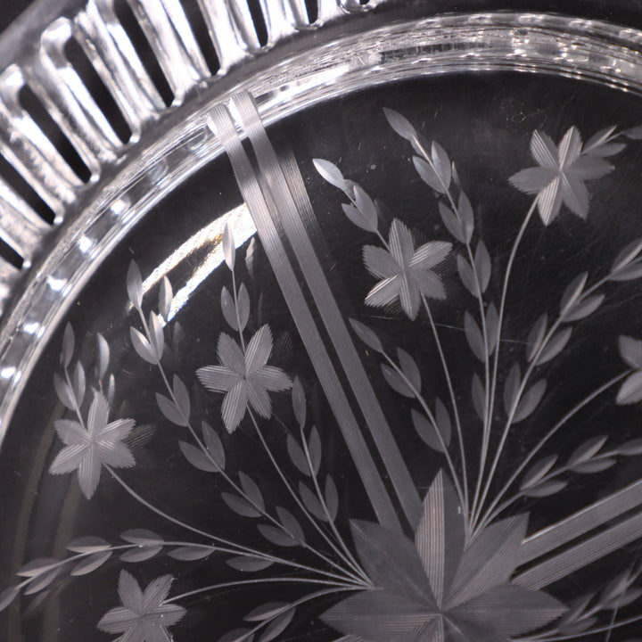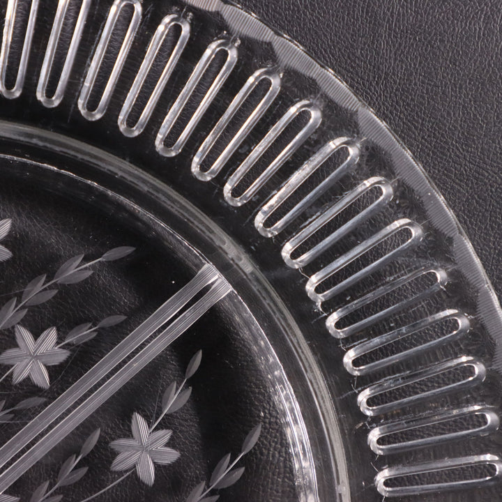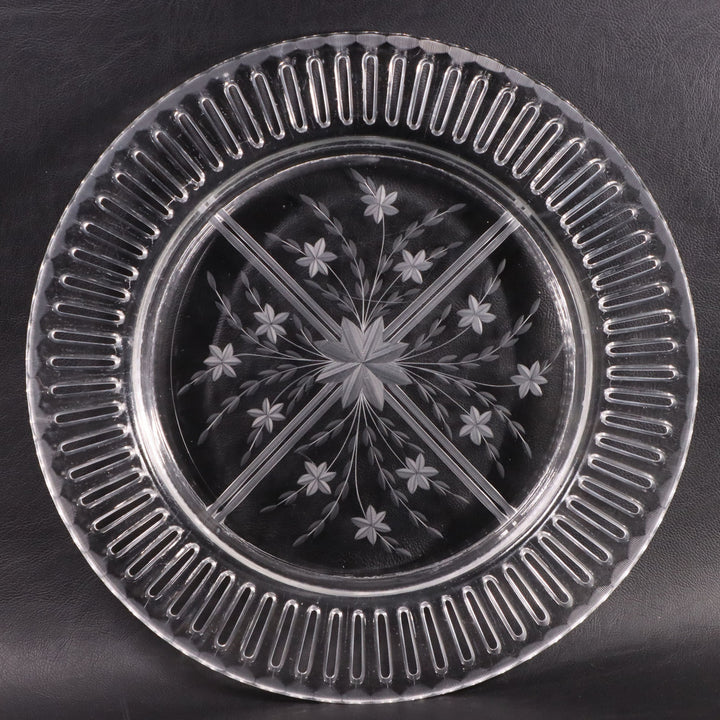 Crystal Etched Floral Reticulated Pierced Clear Glass 10 3/8" Dinner Plate