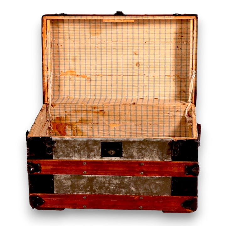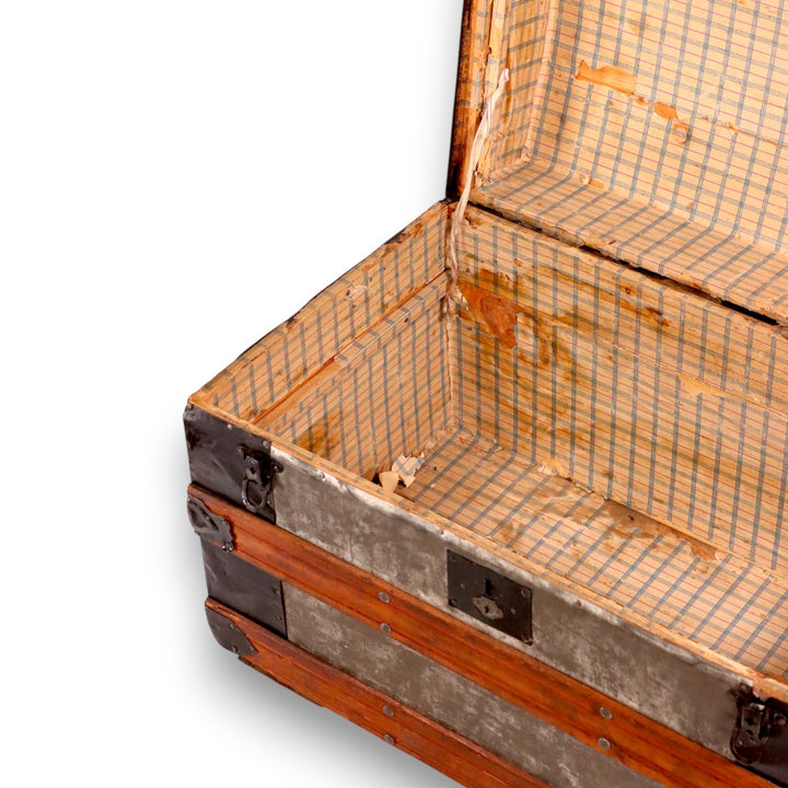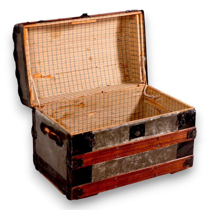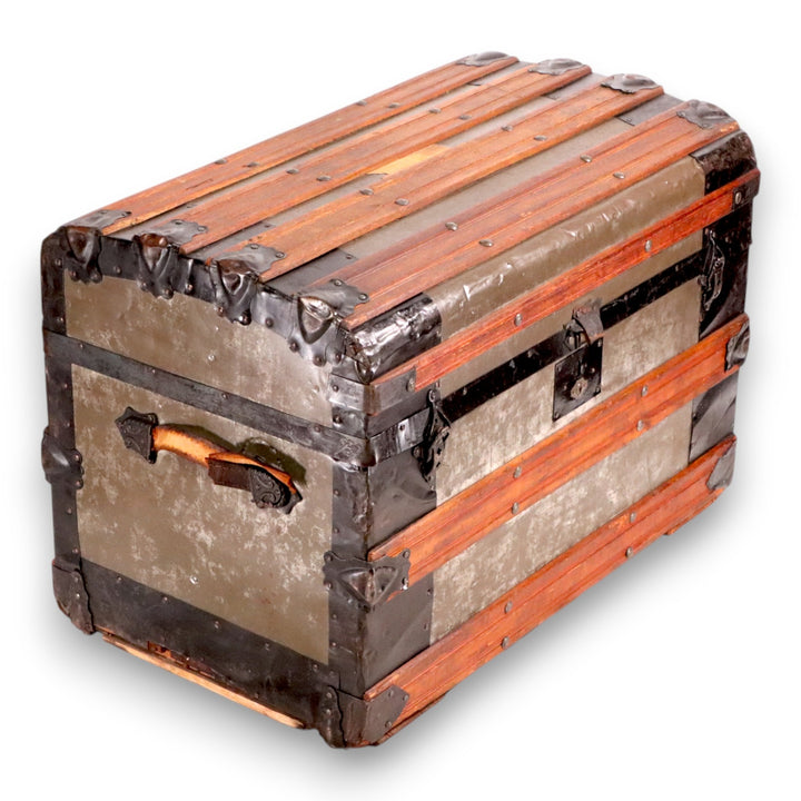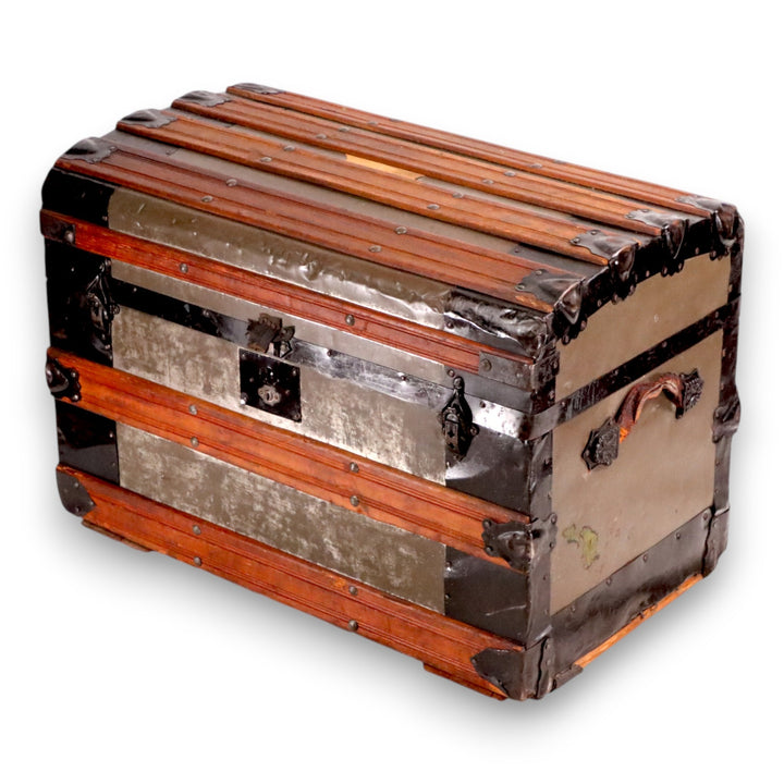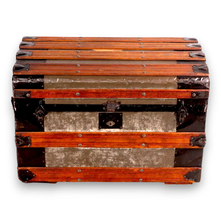 Curve Topped Antique Steamer Trunk 28x19x17 Galvanized Panels 1880's