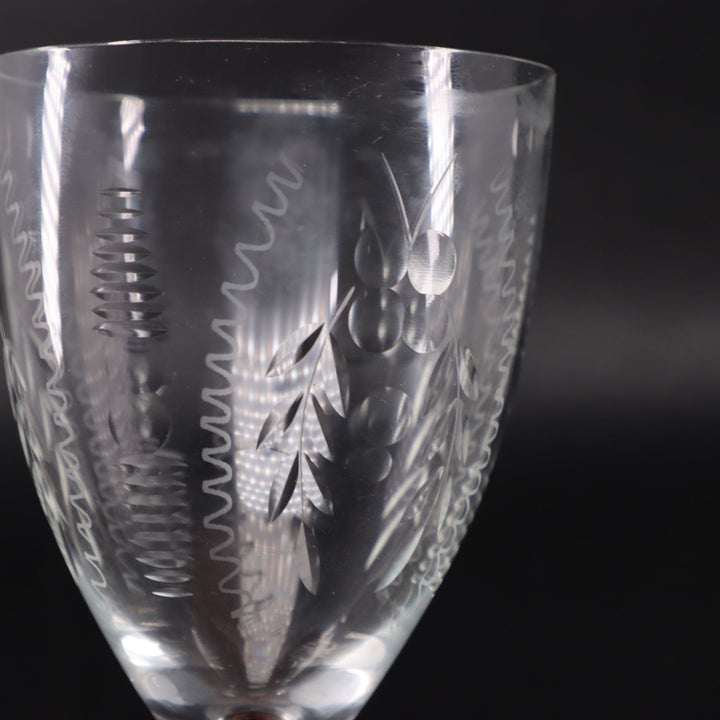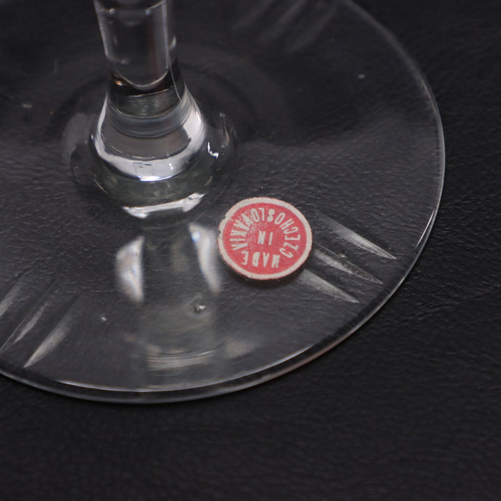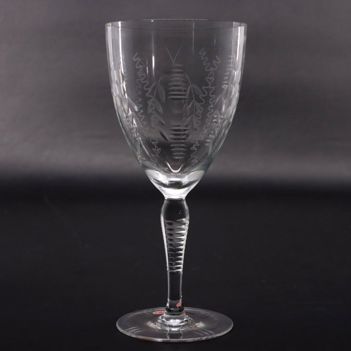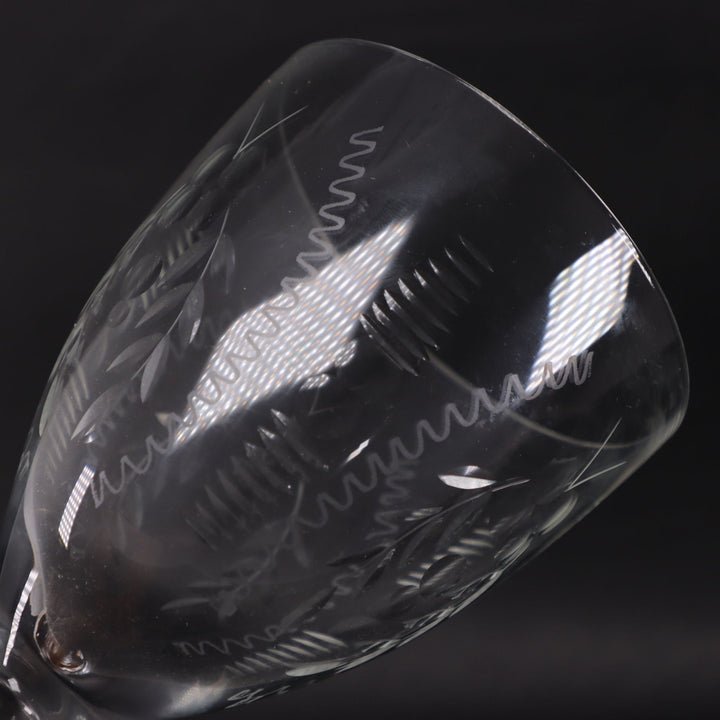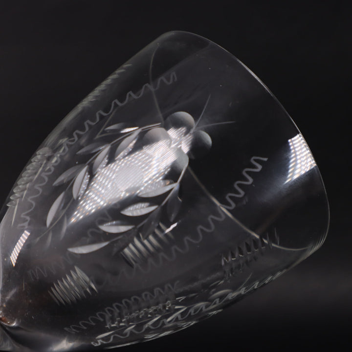 Cut and Etched Crystal Wine Glass 7 3/8" Czechoslovakia Vintage