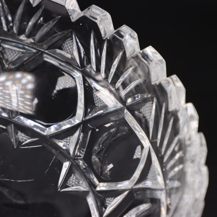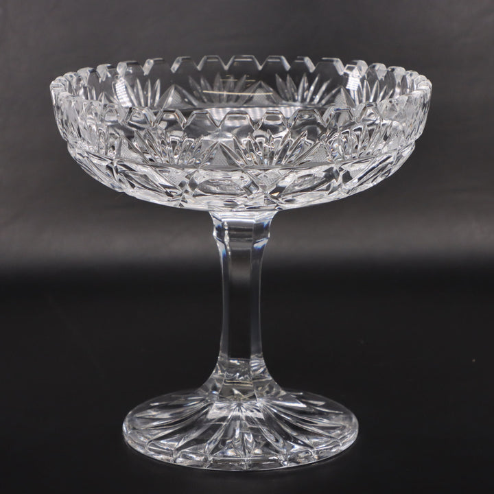 Cut Crystal Candy Dish Pedestal Compote 7 1/4" Sawtooth Rim Vintage