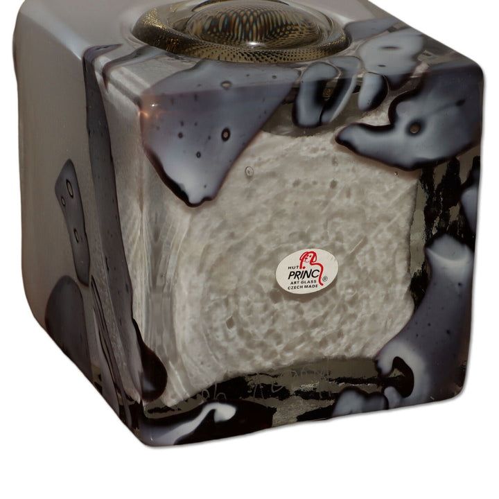 Czech Hut Princ Art Glass Sculpture Bottle Vase Screen Medallion Front 1990's