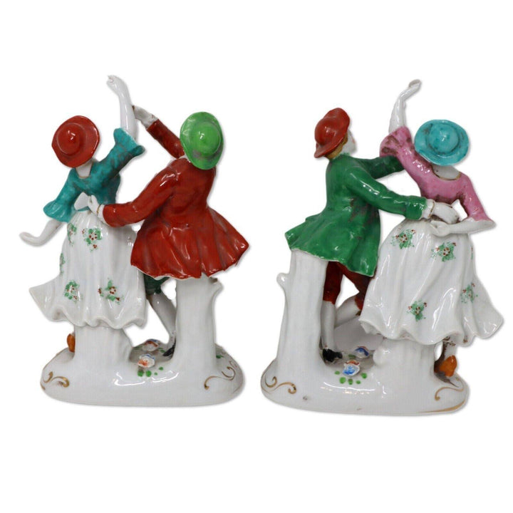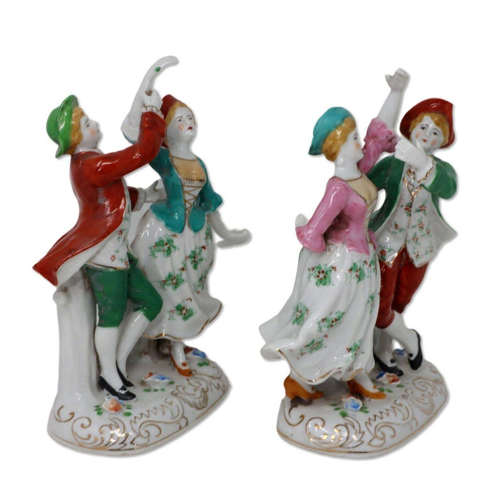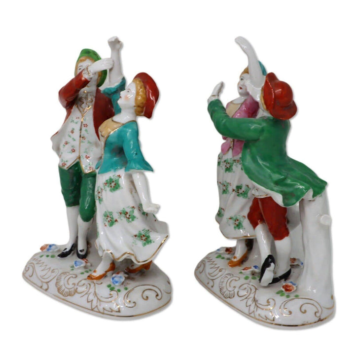Pair Dancing Colonial Couple Vintage Japanese Porcelain Figural Figurine 22kt Gold