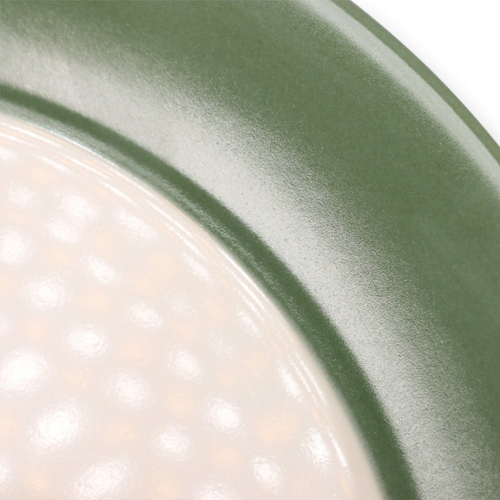 This dinner plate from the Dansk Graves Studio collection showcases the clean, modernist sensibility of designer Michael Graves. The "Fern" variant from the Ang. L™ dinnerware series features a softly speckled sage green border surrounding a creamy white center. It’s an excellent choice for collectors of contemporary or postmodern design, as well as for stylish everyday use. Crafted in Thailand and microwave/dishwasher safe, it embodies both beauty and functionality.
