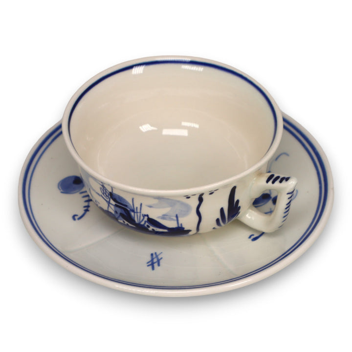 Delft Blue Hand Painted Tea Cup & Saucer Holland Vintage 20th C.